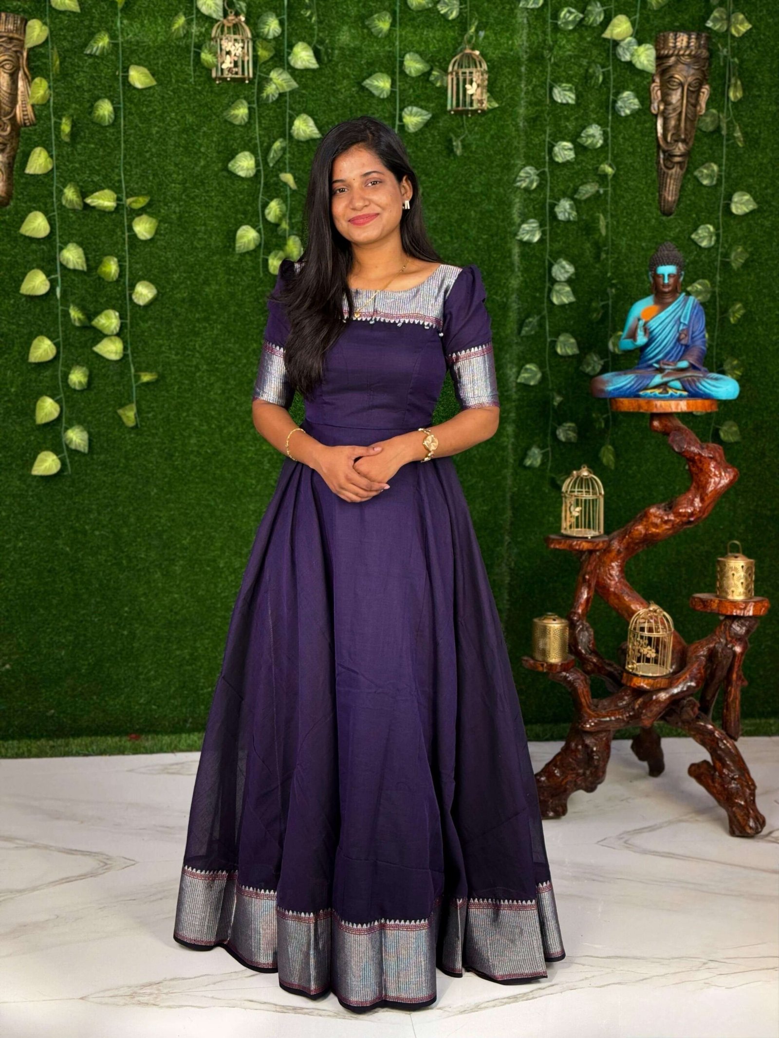 A comfortable cotton maxi with beautiful silver Zari
